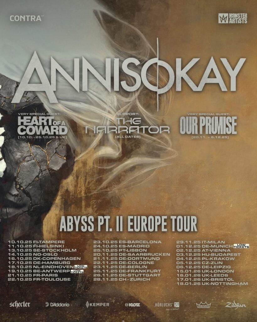 Si deseas ver al THE NARRATOR en vivo, algo altamente recomendado, la banda iniciará una extensa gira europea con ANNISOKAY a partir del 10 de octubre. Los boletos están volando. Todas las fechas confirmadas se encuentran al final. Además, se ha anunciado un show especial en su ciudad natal, Essen, el 20 de diciembre de 2025, cerrando un año exitoso con una gran celebración.